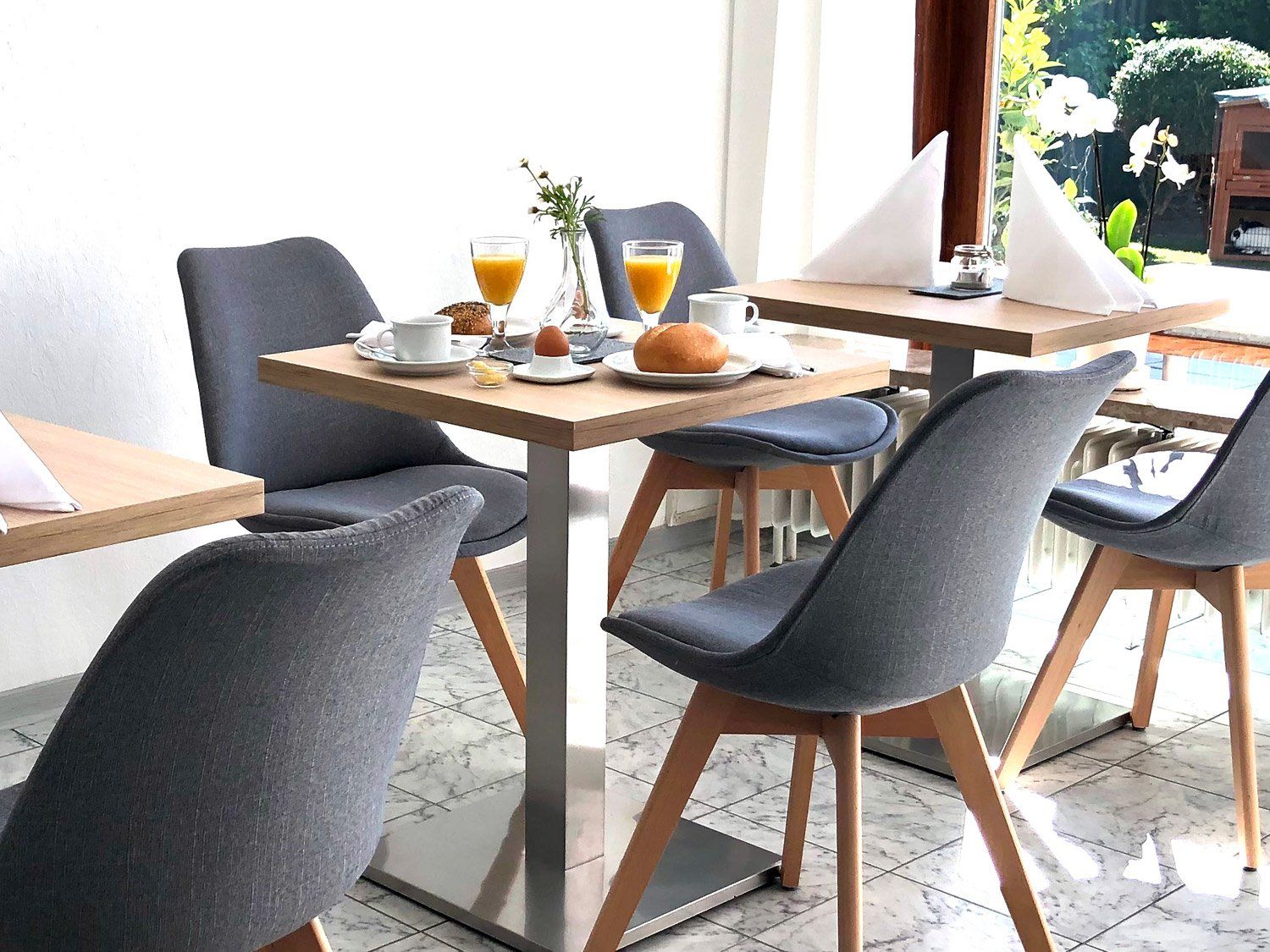 Je nach Wetter können Sie ausgiebig auf der Terrasse im Garten oder im sonnendurchfluteten Frühstückraum frühstücken.